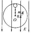 ①若在原题的基础上,使小球带正电荷g,在空间加一匀强电场,若所加电场方向竖直向下,如图所示,则小球在最高点不脱离圆轨道的最小速度应满足什么条件?