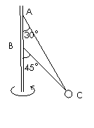 13.如图所示,两绳系一质量为m=0.1kg的小球,上面绳长L=2m,两端都拉直时与轴的夹角分别为30°与45°,问球的角速度在什么范围内,两绳始终张紧,当角速度为3 rad/s时,上、下两绳拉力分别为多大?