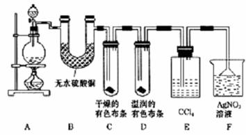 28.(19分)某校化学实验兴趣小组为了探究在实验室制备 Cl2的过程中有水蒸气和HCl挥发出来, 同时证明氯气的某些性质 , 甲同学设计了如图所示的实验装置 ( 支撑用的铁架台省略 ) , 按要求回答问题。