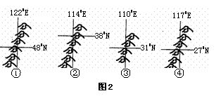 5.上面四幅图中能正确反映台湾岛年太阳辐射量(焦尔/平方厘米)与某月平均气温(℃)的一组是