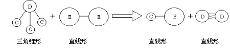 ③ E与A同周期,C、D、E三种元素形成的单质或化合物可发生如下图所示的反应。