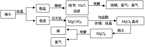 22.(10分)海水中有非常丰富的化学资源,从海水中可提取多种化工原料。下图是某工厂对海水资源综合利用的示意图。