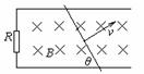 4. 如图所示,平行金属导轨间距为d,一端跨接电阻为R,匀强磁场磁感强度为B,方向垂直平行导轨平面,一根长金属棒与导轨成θ角放置,棒与导轨的电阻不计,当棒沿垂直棒的方向以恒定速度v在导轨上滑行时,通过电阻的电流是 ( A )