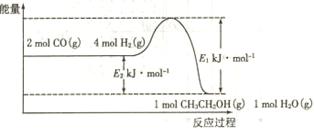 ,同样可制得乙醇(可逆反应)。该反应过程中能量变化如图所示: