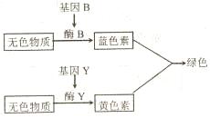 控制。基因B控制蓝色素的合成,基因Y控制黄色素的合成,bbyy个体显白色,其遗传机理如右图所示,请回答:
