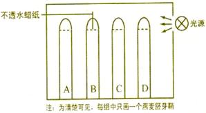 a:若A组不向光弯曲生长,B、C、D三组都向光弯曲生长,则说明 。