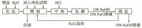 用。氯碱厂电解饱和食盐水制取NaOH的工艺流程如下: