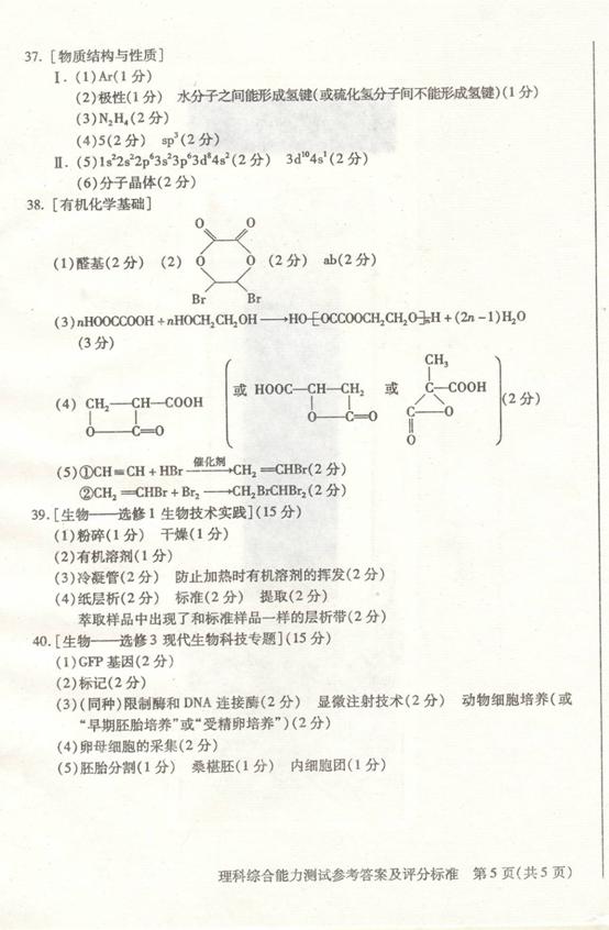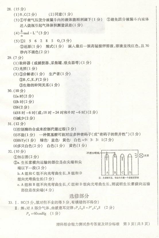 (二) 选考题共45分。请考生从给出的3道物理题、3道化学题、2道生物题中每科任选一题做答,并用2B铅笔在答题卡上把所选题目的题号涂黑。注意所做题目的题号必须与所涂题目的题号一致,在答题卡选答区域指定位置答题。如果多做,则每学科按所做的第一题计分。