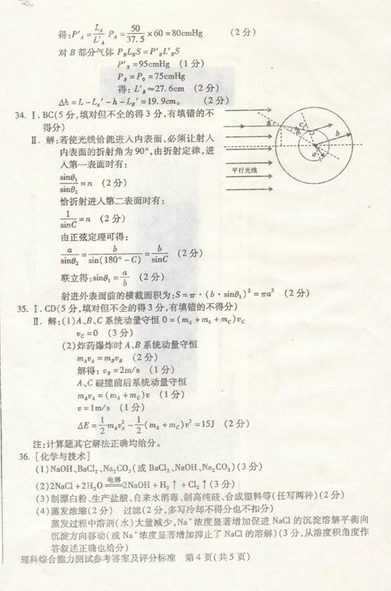 Ⅱ.(10分)用折射率为n的透明物质做成内外半径分别为