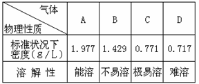 3、 空气在标准状况下的密度是1.29g/L。以下四种气体中,既能用排水法收集,又能用向