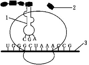 (3)根据图并参考右表分析:[1] 上携带的氨基酸是______,这个氨基酸与前面的氨基酸是通过_______________(反应)连接在一起的。