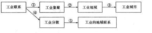 B.内部联系简单的工业区,通过过程③,常会形成重要的工业城市
