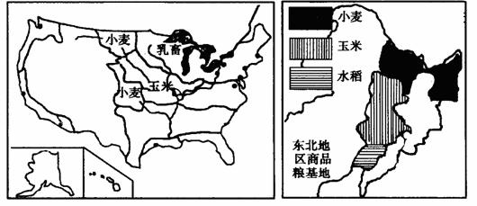 37.下图为美国和中国东北地区农业分布示意图,读图,回答下列问题:(13分)