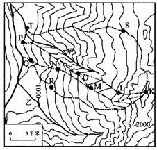 10. 拟在K点与T点之间选择起伏较平缓的路线,修建供拖拉机通行的道路,合理的路线是