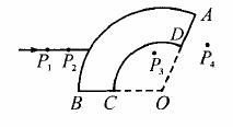 P1的像,接着在眼睛所在的一侧插两枚大头针P3和P4,使______________,P4______________。在纸上已标出大头针位置和圆弧状玻璃砖轮廓如图所示.(O为两圆弧圆心,图中已画出经过P1、P2 点的人射光线)