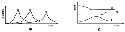 (12分)研究人员用一定量的35S标记的氨基酸来培养哺乳动物的乳腺细胞,测得a、b、c三种细胞器上放射性强度的变化(如甲图),相关细胞器膜及细胞膜膜面积的变化(如乙图),据图回答: