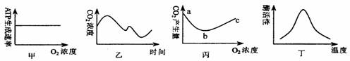 C.丙图表示酵母菌呼吸时氧浓度与CO2产生量的关系,a点ATP产生量最大