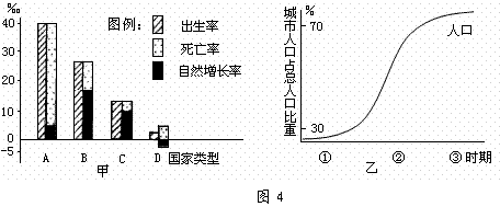 (福建省清流一中2010届高三上学期期中考)图4是人口增长示意图(甲)和城市人口比重增长示意图(乙),读两图完成9-10题。