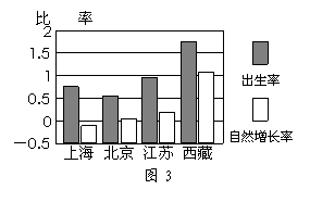 (江苏省淮安市2009届高三第二次调研考试)图3是“我国部分省、市、自治区人口出生率和自然增长率统计图”。读图回答18-19题。