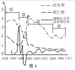 (广东省佛山市2009届高三第一次质量检测)图6为中国人口变化图(人口自然增长率-城镇社会劳动者增长率=剩余劳动力增长),回答23-24题: