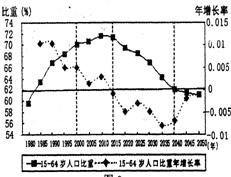 (福建省惠安县崇武中学2010届高三上学期周考(二))读中国劳动适龄人口(15-64岁)比重及其年增长率变化预测图,完成4-5题。