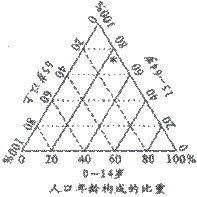 人口年龄构成状况,其中0-14岁人口的比重约是( )
