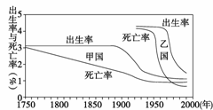 )图4为“甲、乙两国人口再生产类型转变图”。据此回答12-14题。