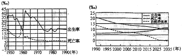(2)我国人口总数达到最高峰的时间大约在 年。分析2010年后我国人口死亡率缓慢上升的主要原因。