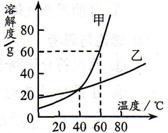 D.60℃时,将等质量的甲乙两种物质的饱和溶液降温