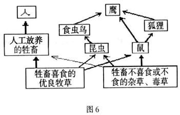 51.(5分)我国西部资源开采过度,草原植被遭到破坏,生物多样性锐减,由此引起生态环境恶化。现在,保护生态环境,实现可持续发展,已经成为西部开发中面临的最紧迫、最艰巨的任务。图6示一个草原生态系统的营养结构,请据图回答问题。