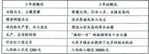 据报道,广东某乡历时5年发生了巨大变化,如下表所示。据此回答43-44题。