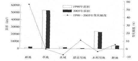 (1)该市2005年最主要的土地利用类型是 ,1990-2005年变化幅度最大的土地利用类型是 ,该市主要的自然带是 。(3分)