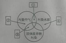 从工业废弃物对环境影响的角度考虑,图中数码表示的工业部门排序正确的是( )