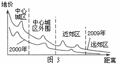 图3是“某城市从市中心到远郊的土地利用空间结构示意图”。读图完成9-10题。