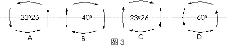 4.下面四幅图(图1)中,表示北半球冬至日的是