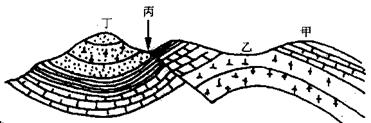 (1)图中丁处地质构造名称是 ,地貌名称是 。