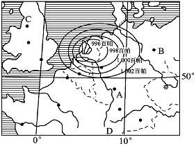 (1)出发前,旅行团成员从网上查到:图中所示的天气系统正在向正东方向运动,该天气系统过境B城时的天气状况为__________ ,过境后B城市的风向为____________。