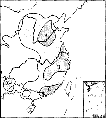 (2)图中ABC是我国三个干旱严重地区,分别说明A、B两地干旱形成的季节及原因。