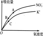 右图是胡萝卜在不同的含氧情况下从硝酸钾溶液中吸收K+ 和NO