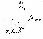 [例2]氢气球重10 N,空气对它的浮力为16 N,用绳拴住,由于受水平风力作用,绳子与竖直方向成30°角,则绳子的拉力大小是_____,水平风力的大小是____ (答案:4