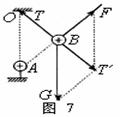 [例5如图7所示整个装置静止时,绳与竖直方向的夹角为30º。AB连线与OB垂直。若使带电小球A的电量加倍,带电小球B重新稳定时绳的拉力多大?