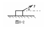 例2、拉力F作用重量为G的物体上,使物体沿水平面匀速前进,如图8-2所示,若物体与地面的动摩擦因数为μ,则拉最小时,力和地面的夹角θ为多大?最小拉力为多少?