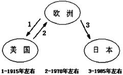(广东省汕头英华外国语学校2010届高三上学期期末考试)读世界汽车产业三次大转移示意图,回答10-12题。