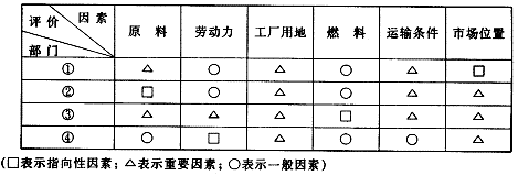 (江苏省访仙中学2010届高三上学期期中考试)下表为四类工业部门的区位因素评价,读表完成14-15题。