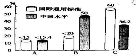 (辽宁省开原高中五校联考2010届高三第三次月考试题)读中国工业化结构指标与国际通用标准的比较图,回答25-26题。