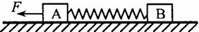 16.如图所示,在光滑水平面上有两个质量分别为m1和m2的(m1>m2)木块A和B,它们中间用轻弹簧连接。现用水平恒力F拉木块A使它们向左加速运动,稳定后弹簧的伸长量为x1;若保持拉力大小为变,改为水平向右拉物体B,使它们一起向右加速运动,稳定后弹簧的伸长量为x2,则 ( )