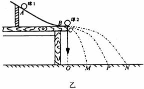 ⑥不放小球2让小球1从斜槽上A点由静止滚下,并落在水平地面上。重复多次,用尽可能小的圆把小球的所有落点圈在里面,其圆心就是小球落点的平均位置:把小球2放在斜槽前端边缘处的C点,让小球1从A点由静止滚下,使它们碰撞。重复多次,并使用同样的方法标出碰撞后两小球落点的平均位置。如图乙所示。