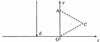 如图所示,在平面直角坐标系xoy中,第一象限内有一边长为L的等边三角形区域(其AO边与y轴重合、一个顶点位于坐标原点O),区域内分布着垂直纸面的匀强磁场;第二象限内分布着方向竖直向下的匀强电场。现有质量为m、电荷量为g的带正电的粒子(不计重力),以速度v从三角形OC边中点垂直射入磁场,并垂直y轴进入电场,最后从x轴上的某点离开电场,已知粒子飞出电场时,其速度方向与进入磁场时的速度方向垂直。
