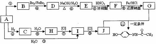 (4)写出J与G反应生成对乙酰氨基酚的化学方程式 。