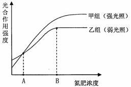 (1)该植物在甲、乙两种光照强度下,随氮肥浓度变化,光合作用强度的差异是